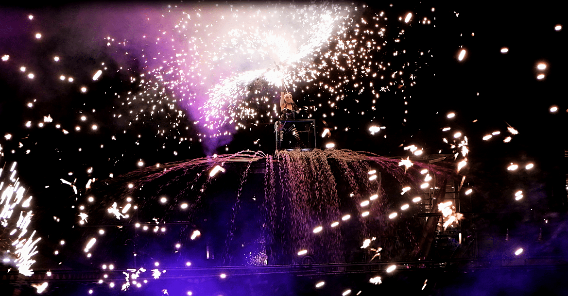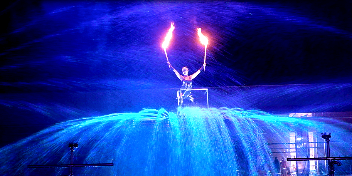 Nou je gaat gewoon met vuur spelen bovenop een waterval.